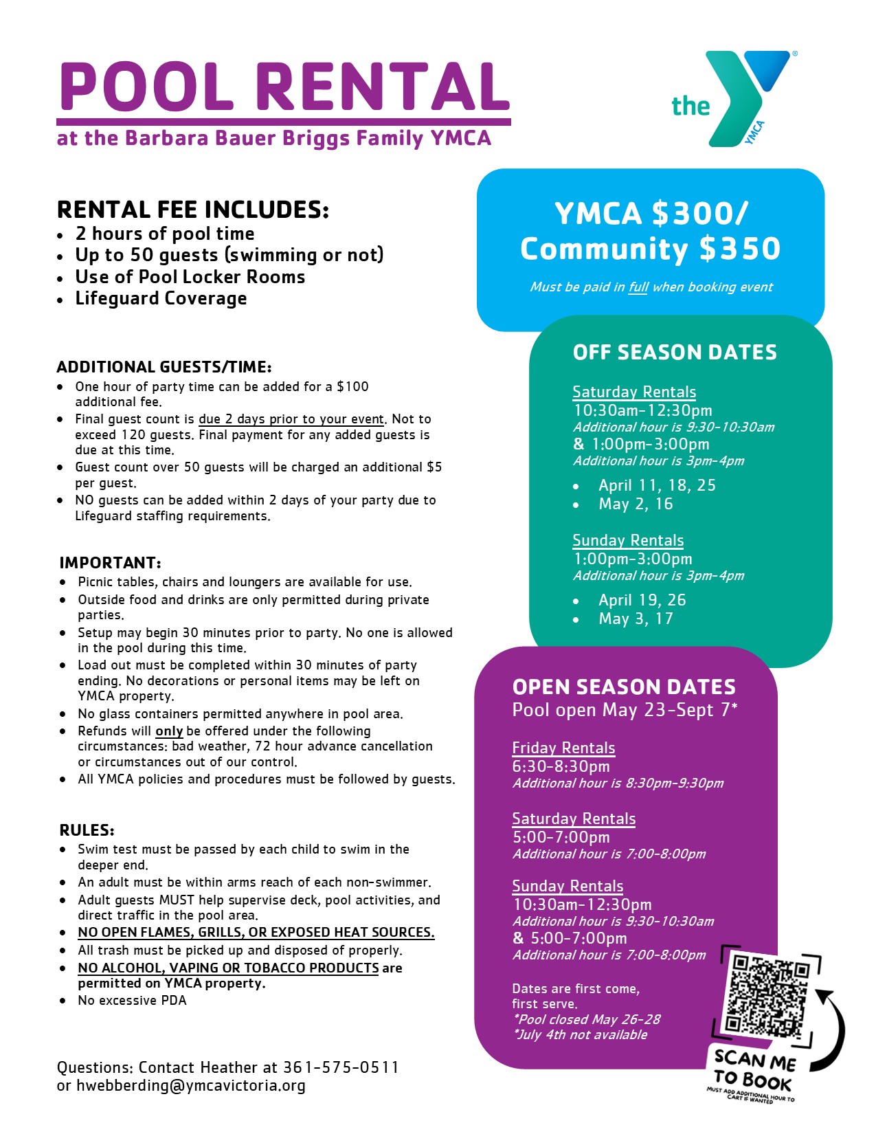 YMCA $300/Community $350